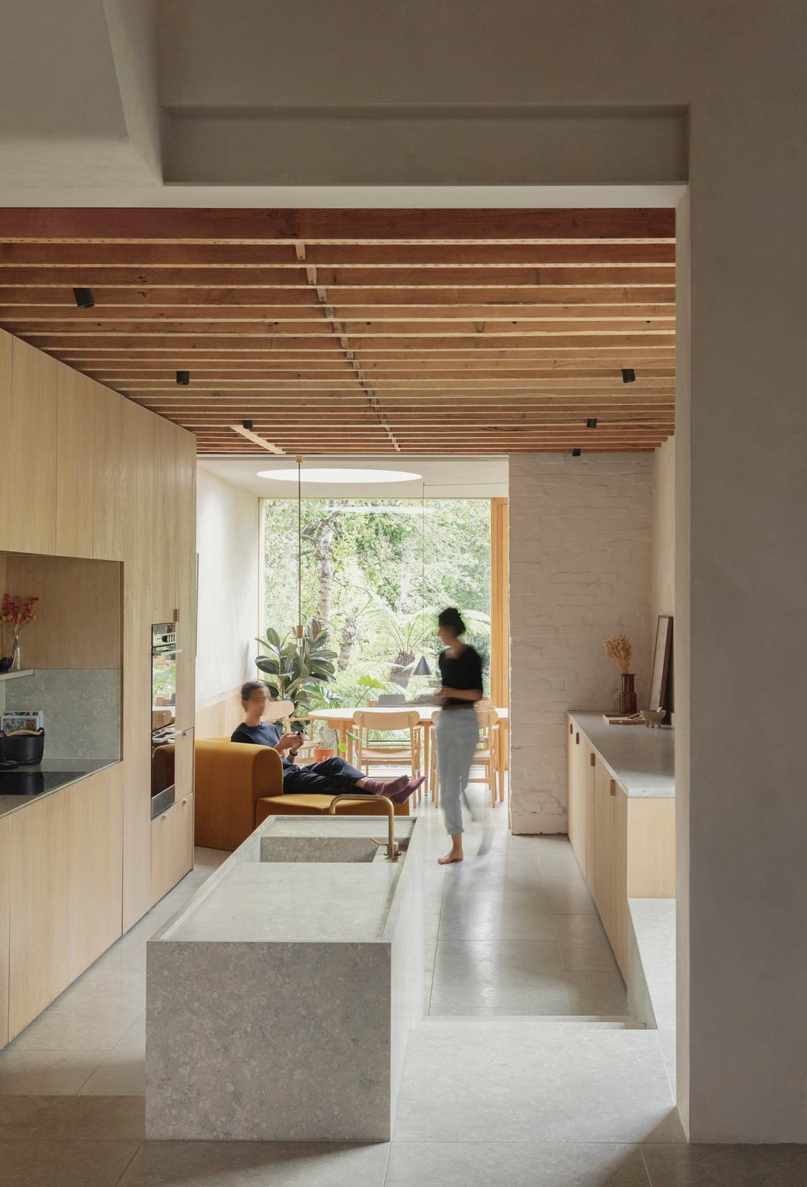 We decided to use the stone as a low embodied energy, natural alternative to polished concrete as it offers a similar neutral grey palette and we have been very happy with the result”.