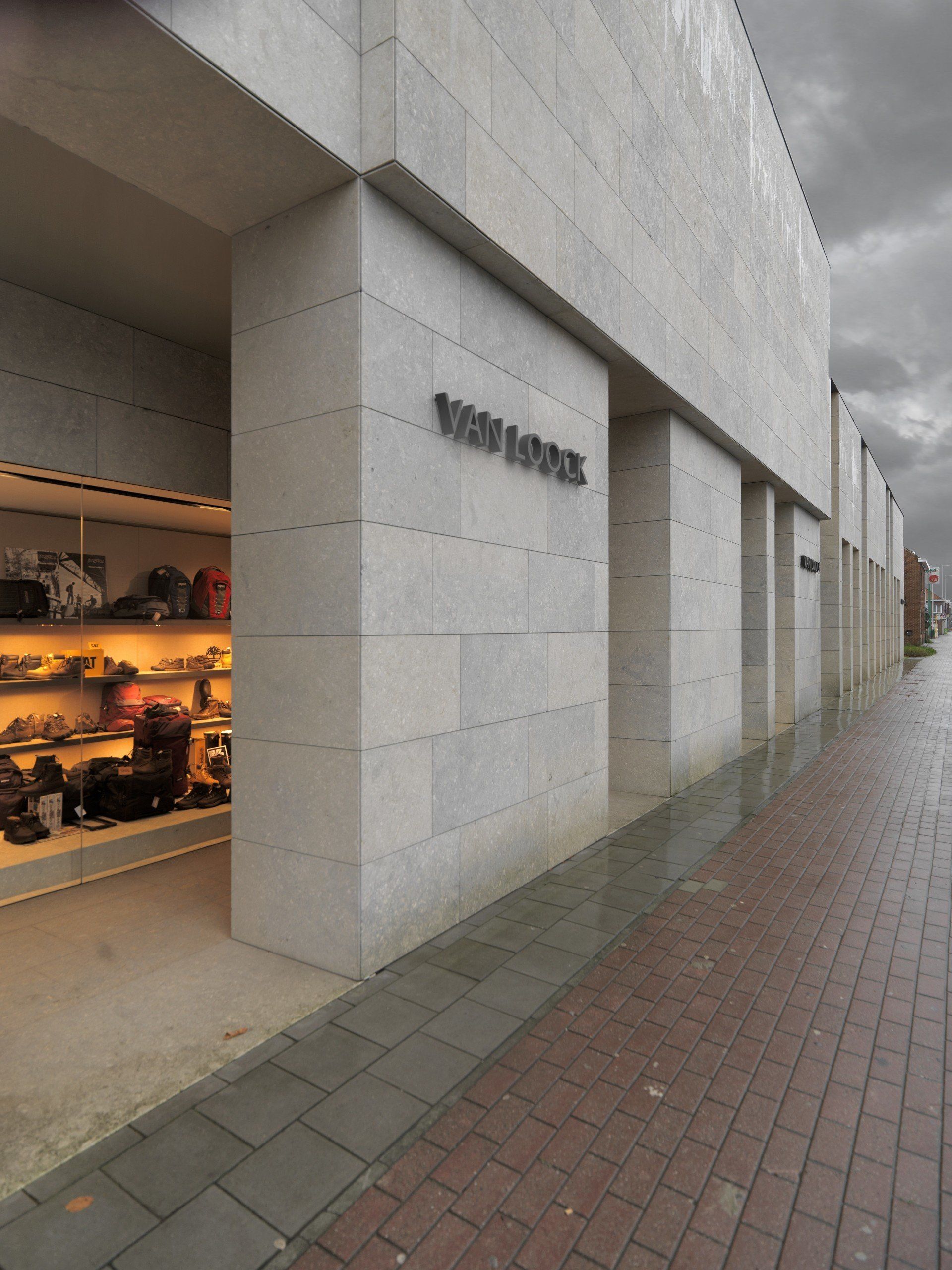 Grassi Pietre supplied for the Zandhoven branch a total 1,700 m2 of Grigio Alpi, brushed and bush-hammered, for the floors, cladding, staircase, and bathroom areas, including solid basins.